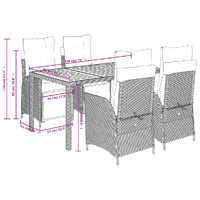This garden dining set is a great choice for al fresco dining or just relaxing in the garden, backyard, or on the patio. Durable material: PE rattan, also known as poly rattan, is a strong, low-maintenance synthetic material that looks like natural rattan. It's lightweight, easy to clean, and commonly used for outdoor furniture due to its durability and weather-resistant properties.Adjustable backrest: This garden seat has a handle. You can adjust the backrest to any position by pulling the handle, and quickly return it to its original position.Comfortable seat experience: This outdoor furniture, complete with thickly padded cushions, offers a comfortable seating experience.Removable and washable cover: These seat cushions feature removable covers for easy washing and maintenance. The back cushions have a flap at the back for easy attachment to the backrests.Stable and easy-to-clean tabletop: This garden table has an acacia wood top that is sturdy, durable, and easy to clean with a damp cloth. Good to know: To make sure your outdoor furniture stays beautiful, we recommend protecting it with a waterproof cover.