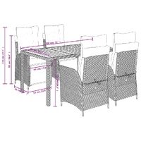 This garden dining set is a great choice for al fresco dining or just relaxing in the garden, backyard, or patio. Durable material: PE rattan, also known as poly rattan, is a strong, low-maintenance synthetic material that looks like natural rattan. It's lightweight, easy to clean, and commonly used for outdoor furniture due to its durability and weather-resistant properties.Adjustable backrest and footrest: This garden seat has a handle. You can adjust the backrest and footrest to any position by pulling the handle, and quickly return them to their original positions.Comfortable seat experience: This outdoor furniture, complete with thickly padded cushions, offers a comfortable seating experience.Removable and washable cover: These seat cushions feature removable covers for easy washing and maintenance. The back cushions have a flap at the back for easy attachment to the backrests.Stable and easy-to-clean tabletop: This garden table has an acacia wood top that is sturdy, durable, and easy to clean with a damp cloth. Good to know:To make sure your outdoor furniture stays beautiful, we recommend protecting it with a waterproof cover.