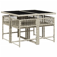 This garden dining set is a great choice for al fresco dining or just relaxing in the garden, backyard, or on the patio. Durable material: PE rattan, also known as poly rattan, is a strong, low-maintenance synthetic material that looks like natural rattan. It's lightweight, easy to clean, and commonly used for outdoor furniture due to its durability and weather-resistant properties.Compact storage: These chairs have a flap backrest that can be folded down, making it easy to store them under the table. When folded, they neatly fit under the table, forming a space-saving cube shape.Comfortable seat experience: This outdoor furniture, complete with thickly padded cushions, offers a comfortable seating experience.Removable and washable cover: These seat cushions feature removable covers for easy washing and maintenance. The cushion covers have a flap at the back for easy attachment to the backrests.Glass tabletop: The outdoor table's top is made from strong and durable tempered glass, making it easy to clean with a damp cloth and adding a touch of elegance to your outdoor space. Good to know:To make sure your outdoor furniture stays beautiful, we recommend protecting it with a waterproof cover.