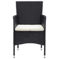 This garden dining set is a perfect combination of style and functionality and is meant to be the focal point of your garden, balcony or patio. Sturdy steel frame wrapped with weather-resistant PE rattan, the garden chairs are rust and mildew proof, providing years of quality relaxation. The outdoor table features a WPC tabletop, which is easy to clean and suitable for outdoor use. The aluminium frame also ensures stability and sturdiness. Additionally, the thickly padded cushions provide ultimate comfort during your sitting time. This patio dining set is easy to move with the lightweight construction. Note: In order to extend the life of your outdoor furniture, we recommend you to clean it regularly and do not leave it outdoors without protection unnecessarily.Clean: Use a mild soap solution.Storing: If possible, store in a cool, dry place indoors. If the product is stored outdoors, protect it with a waterproof cover. Wipe and dry the excess water or snow from flat surfaces after a rain or snowfall. Allow sufficient air circulation to avoid moisture-related damage.