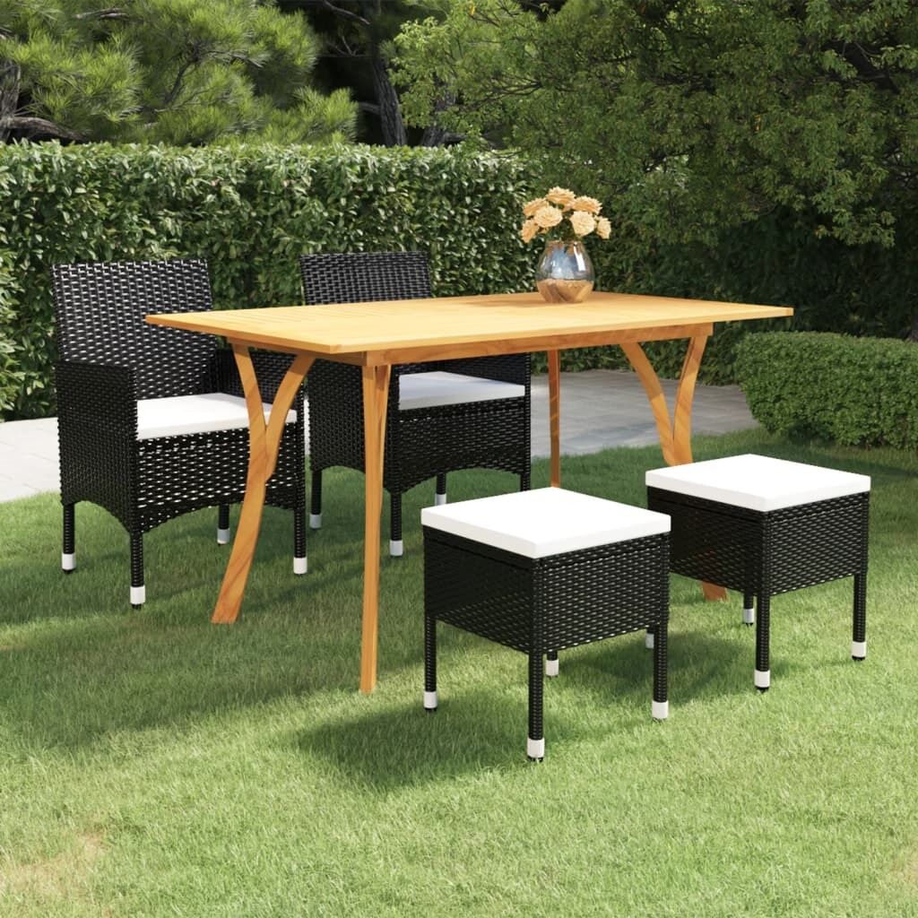$541.43Create a compelling and cohesive aesthetic in your outdoor space with this garden dining set! This outdoor table is made of solid acacia wood, making it sturdy and stable. The oil-finished surface also makes the table easy to clean with a damp cloth. Additionally, the curved legs contribute to its stylish design. Featuring a steel frame covered with weather-resistant PE rattan, these dining chairs are sturdy and easy to clean. The thickly padded cushions add comfort in your lounging time. Note: In order to extend the life of your outdoor furniture, we recommend you to clean it regularly and do not leave it outdoors without protection unnecessarily.Clean: Use a mild soap solutionStoring: If possible, store in a cool, dry place indoors. If the product is stored outdoors, protect it with a waterproof cover. Wipe and dry the excess water or snow from flat surfaces after a rain or snowfall. Allow sufficient air circulation to avoid moisture-related damage.