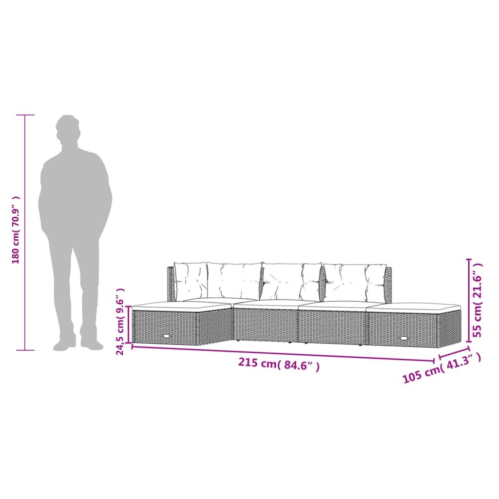 This trendy garden lounge set, featuring an elegant and contemporary design, is a great choice for relaxing in your garden. Durable material: PE rattan, also known as poly rattan, is weather resistant and easy to clean. It remains beautiful on the outside for a long period of time. It's more economical than other materials, while offering great quality, convenience and an aesthetic look.Stable frame: Steel is an exceptionally hard and strong material. It offers sturdiness and stability. The powder coating on steel creates a protective layer against wear and tear.Modular design: Each piece is easy to move around, which makes it easy for you to create different layouts that fit your needs. You can also find the single items in our webshop to arrange your own furniture patterns.Adjustable seat: The seat of the corner sofa can be adjusted at 3 angles for more comfortable sitting or lying position.Comfortable seat experience: With the thickly padded seat and back cushions, the outdoor lounge set is highly comfortable. Good to know:To make assembly as easy as possible, each product is delivered with a manual. Note:To make sure your outdoor furniture stays beautiful, we recommend protecting it with a waterproof cover.