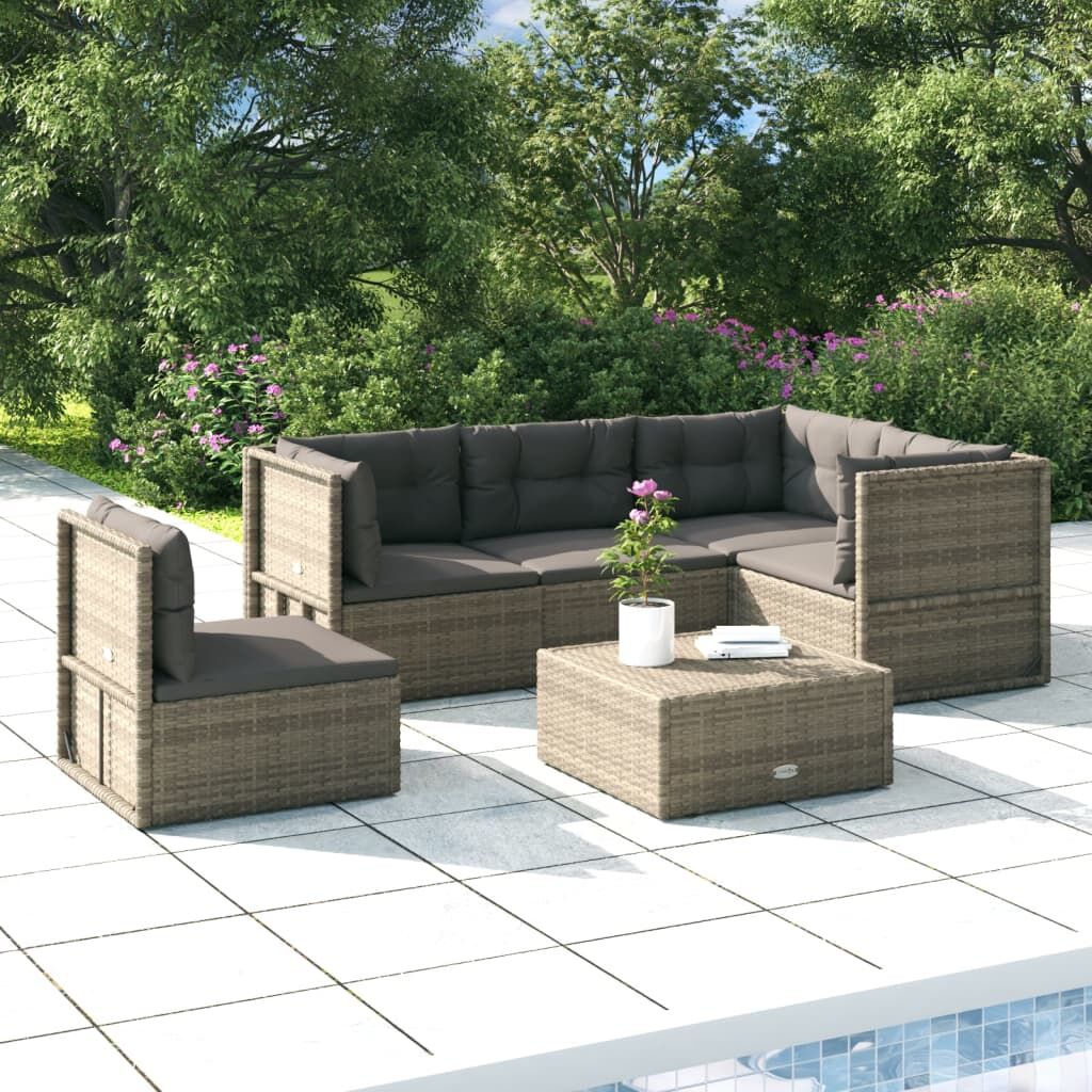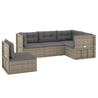 5 Piece Garden Lounge Set with Cushions Grey Poly Rattan
