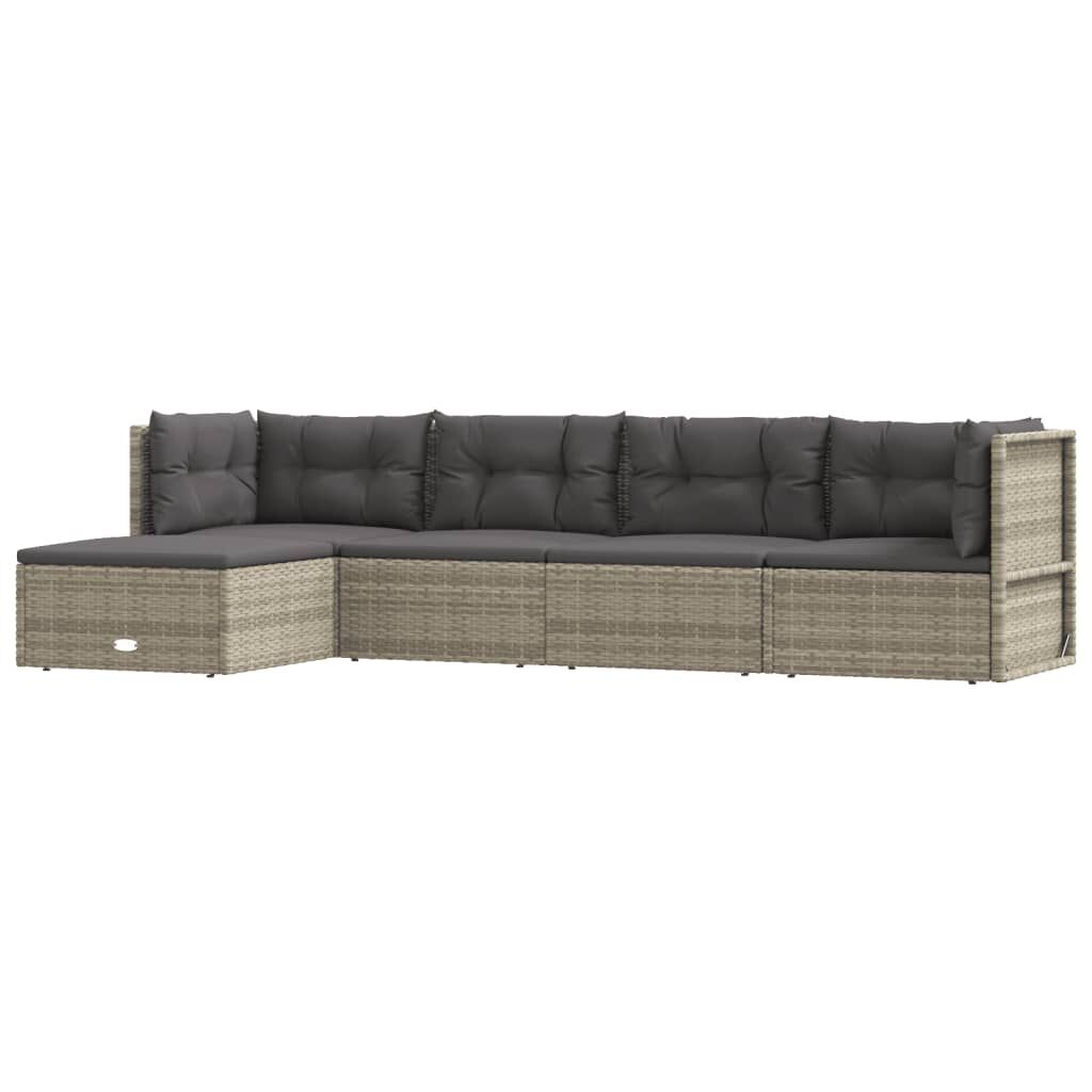 This trendy garden lounge set, featuring an elegant and contemporary design, is a great choice for relaxing in your garden. Durable material: PE rattan, also known as poly rattan, is weather resistant and easy to clean. It remains beautiful on the outside for a long period of time. It's more economical than other materials, while offering great quality, convenience and an aesthetic look.Stable frame: Steel is an exceptionally hard and strong material. It offers sturdiness and stability. The powder coating on steel creates a protective layer against wear and tear.Modular design: Each piece is easy to move around, which makes it easy for you to create different layouts that fit your needs. You can also find the single items in our webshop to arrange your own furniture patterns.Adjustable seat: The seat of the corner sofa can be adjusted at 3 angles for more comfortable sitting or lying position.Comfortable seat experience: With the thickly padded seat and back cushions, the outdoor lounge set is highly comfortable. Good to know:To make assembly as easy as possible, each product is delivered with a manual. Note:To make sure your outdoor furniture stays beautiful, we recommend protecting it with a waterproof cover.