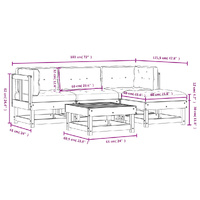 This wooden garden lounge set, standing out with the slatted design and soft cushions, will make a great addition to your garden, patio, or terrace for enjoying a cosy time with your family or friends. Solid pine wood: Solid pine wood is a beautiful natural material. Pine wood has a straight grain, and the knots give the material its signature, rustic look.Sturdy and stable frame: The wooden frame makes the lounge set sturdy and stable for daily outdoor use.Comfortable seat experience: The backrest and armrest add extra seating comfort for the garden furniture set. Also, the thickly padded cushions provide comfort for your sitting time.Modular design: The sofa set is flexible and easy to move around. You can combine it with other modular segments in the webshop to create your own personal garden lounge set configurations! Good to know:To make sure your outdoor furniture stays beautiful, we recommend protecting it with a waterproof cover.