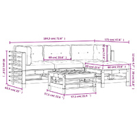 This wooden garden lounge set, standing out with the slatted design and soft cushions, will make a great addition to your garden, patio, or terrace for enjoying a cosy time with your family or friends. Solid pine wood: Solid pine wood is a beautiful natural material. Pine wood has a straight grain, and the knots give the material its signature, rustic look.Sturdy and stable frame: The wooden frame makes the lounge set sturdy and stable for daily outdoor use.Comfortable seat experience: The backrest and armrest add extra seating comfort for the garden furniture set. Also, the thickly padded cushions provide comfort for your sitting time.Modular design: The sofa set is flexible and easy to move around. You can combine it with other modular segments in the webshop to create your own personal garden lounge set configurations! Good to know:To make sure your outdoor furniture stays beautiful, we recommend protecting it with a waterproof cover.