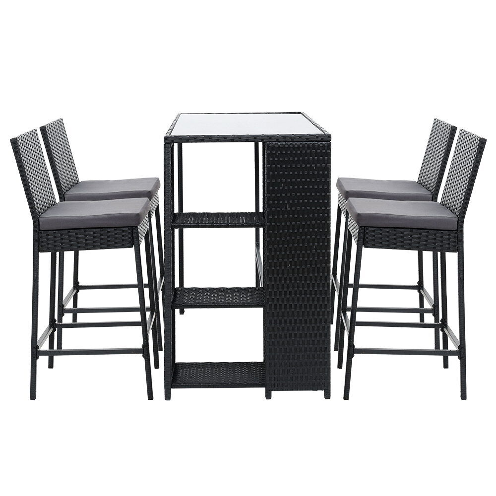 $387.27Looking as stunning as ever in an upgraded design, our Gardeon Outdoor Bar Set certainly deserves its coveted space in your lovely backyard, deck or patio. With its chic and trendy profile, the bar set comes with a table and matching bar stools, with ample seating for all your friends and family. And as the seats have inclined backrests and extra-comfy 5cm thick foam cushions, you can socialise for hours on end without aching backs or bottoms. If you spill your drink, the 5mm tempered glass tabletop and removable seat cushion covers make cleaning up hassle-free. With powder-coated steel construction and quality PE wicker finish, the bar set is designed to handle the rain and sun without any worries for years to come. When not in use, you can save loads of space by pushing 2 chairs under the table.