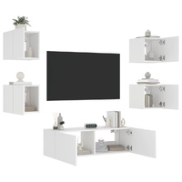 These TV wall cabinets with LED lights are the perfect solution for your living space to maximise space and keep the floor areas uncluttered. Durable material: The engineered wood is of exceptional quality with smooth surface and also features strength, stability and resistance to moisture. Made of engineered wood, these floating TV units are sturdy and durable.Ample storage space: The TV wall units have ample storage space to place your DVD players, books, magazines or other decorative items.RGB LED lights: The wall media units are equipped with vibrant RGB LED lights. With various customisable menus, you can effortlessly change the colour of the lights and even set them to adjust automatically.Wall-mounted design: These TV units with storage can be wall-mounted to add extra storage space. That way, you can maximise your floor space and keep the area clean. Good to know:Screws and plugs for inside the wall are not included. We advise to find and use screws and plugs suitable specifically for your walls. If you're not sure, you can consult with a professional. Please read and follow each step of the instructions.The product has a USB connector that requires a certified 5V USB power source (not included).