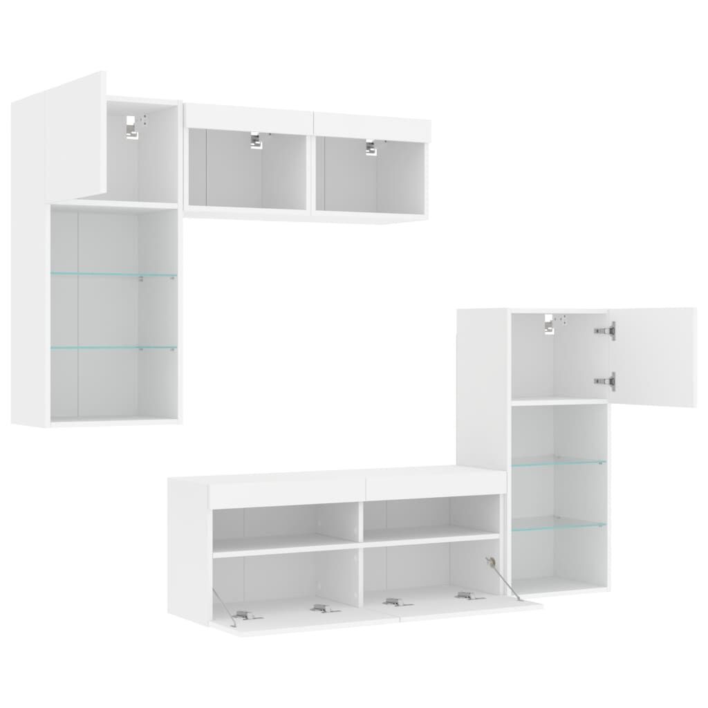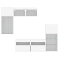 These TV wall units are the perfect solution for your living space to maximise space and keep the floor areas uncluttered. Sturdy material: The engineered wood is of exceptional quality with a smooth surface and also features strength, stability and resistance to moisture.RGB LED lights: The TV unit is equipped with vibrant RGB LED lights. With various customisable menus, you can effortlessly change the colour of the lights and even set them to adjust automatically. These LED lights not only enhance the contemporary look of the floating TV cabinet but also add to its trendy appeal.Wall-mounted design: The television unit can be wall-mounted to add extra storage space. That way, you can maximise your floor space and keep the area clean.Ample storage space: The floating TV unit provides ample space to store your daily essentials such as books, DVDs, magazines, media supplies and other items neatly organised and within easy reach.Versatile design: You can use it as a TV cabinet or mount it on the workplace wall for convenient storage of tools or other miscellaneous items. Also, it transforms an empty wall into a design feature. Good to know:Screws and plugs for inside the wall are not included. We advise to find and use screws and plugs suitable specifically for your walls. If you're not sure, you can consult with a professional. Please read and follow each step of the instructions.The product has a USB connector that requires a certified 5V USB power source (not included).