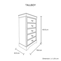 ?Please Note: This package comes onlyBed x1, Bedside Table x2, Tallboy x1, Dresser x1