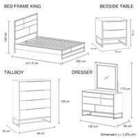 Please Note: This package comes only Bed x1, Bedside Table x2, Tallboy x1, Dresser x1