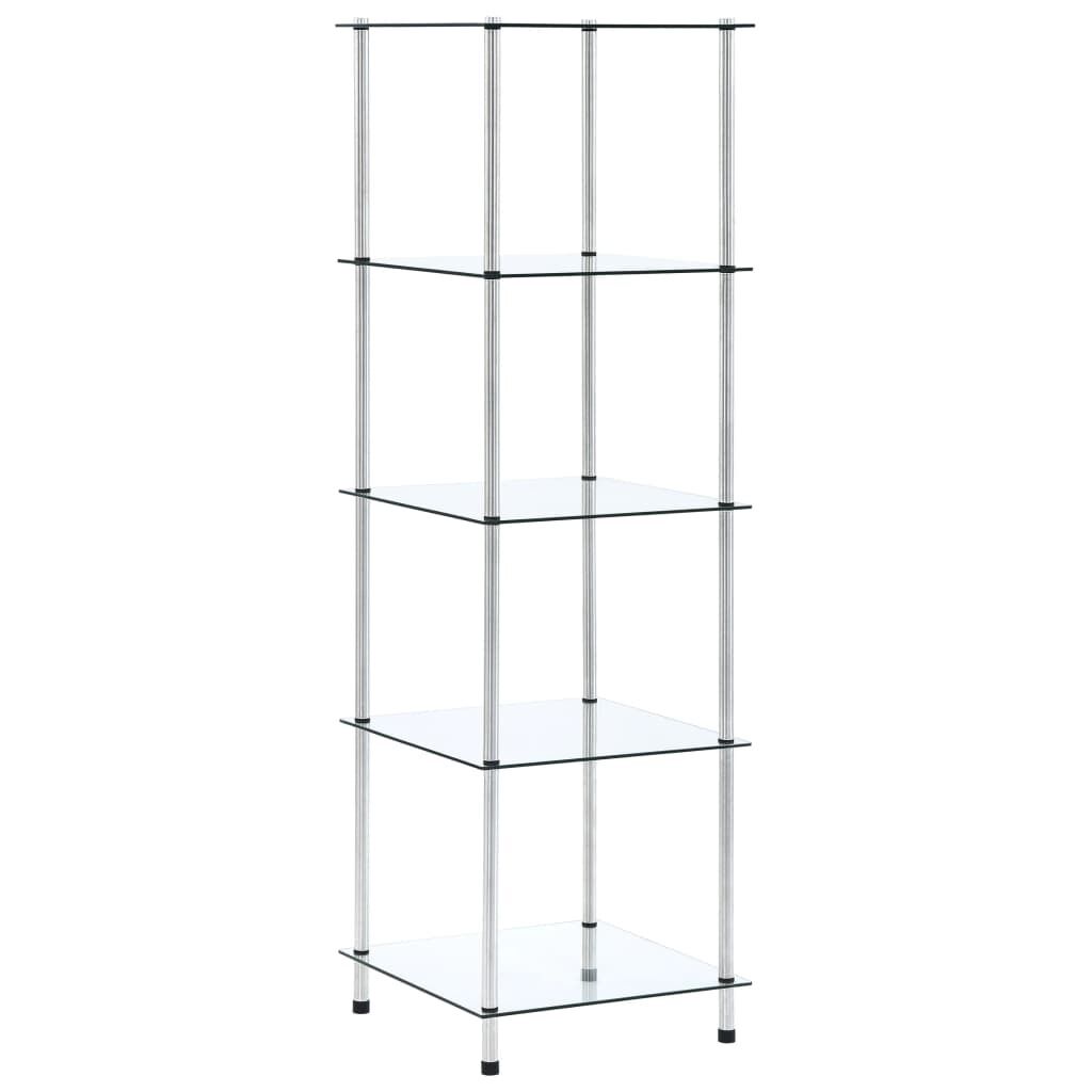 $106.21Instantly add a touch of style to your living space with our contemporary and practical glass shelf! The showcase is designed with five tiers for ample storage space. You can use the multipurpose shelf in living room or office for displaying your collectables, photo frames, potted plants, or in the bathroom for keeping your essentials organised. Made of thick tempered glass and heavy-durable stainless steel, this shelf is exceedingly sturdy and safe. Additionally, the smooth surface is easy to clean with only a damp cloth. Our shelf is easy to assemble.