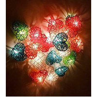 Multi Coloured Rattan Heart String Fairy Lights