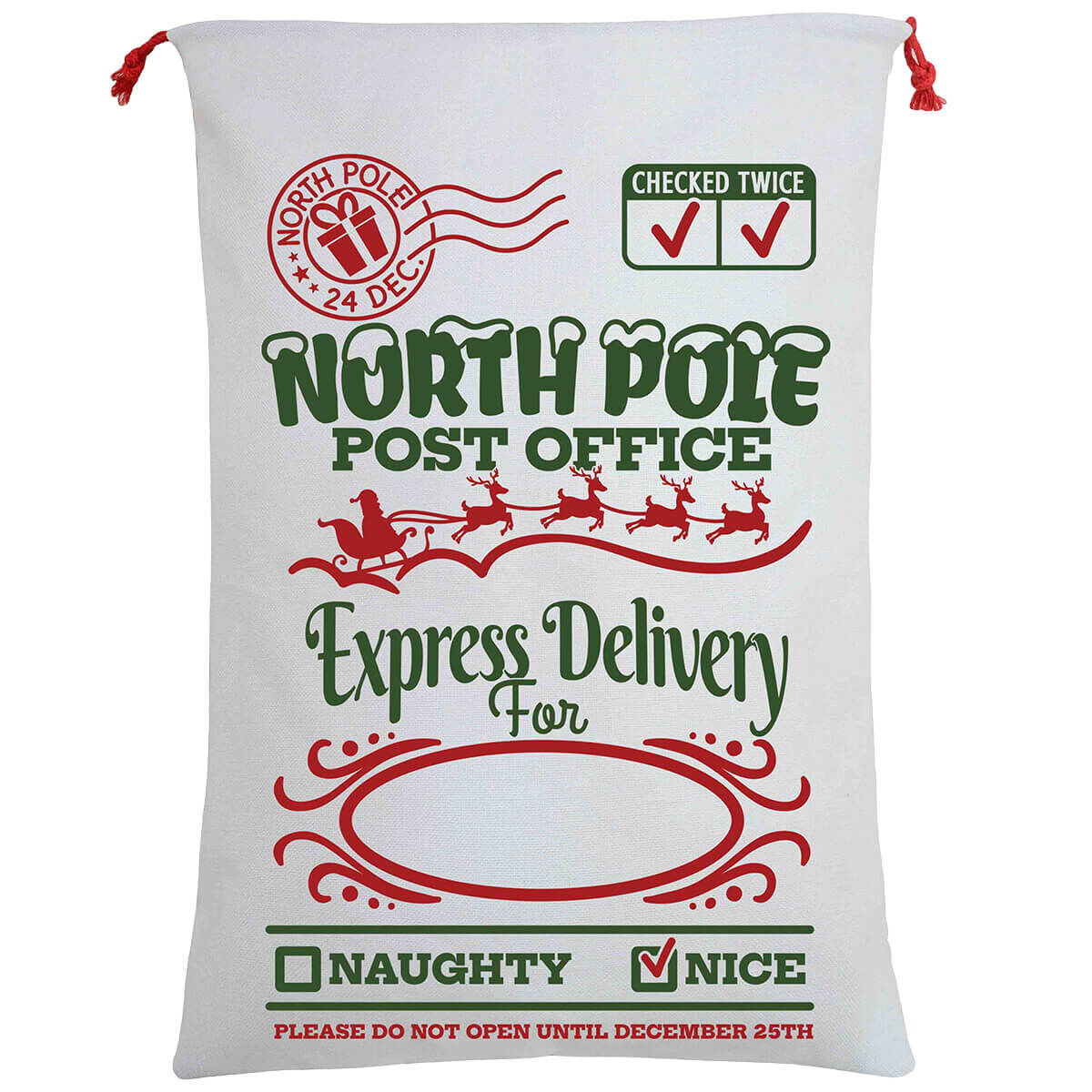 50x70cm Canvas Hessian Christmas Santa Sack Xmas Stocking Reindeer Kids Gift Bag, Cream - North Pole Express (B)