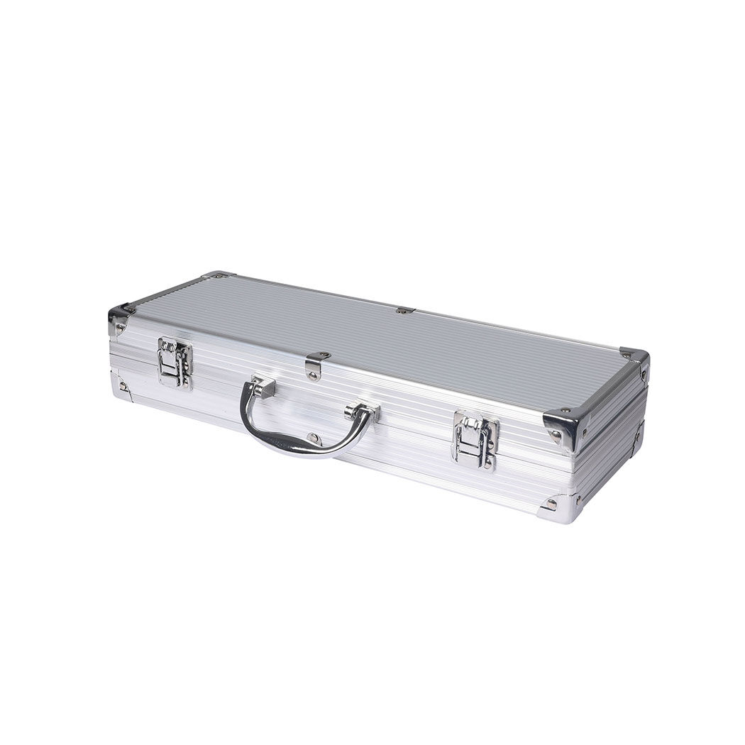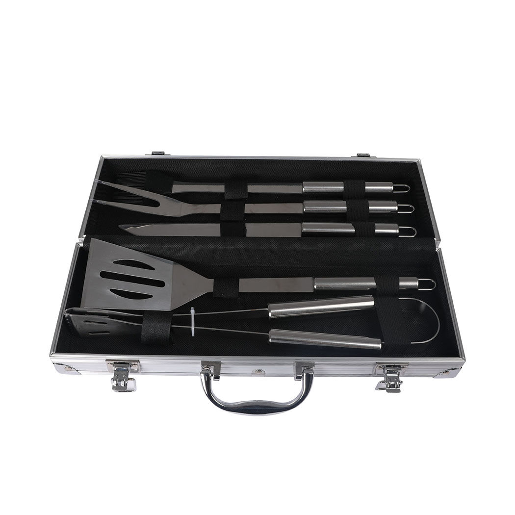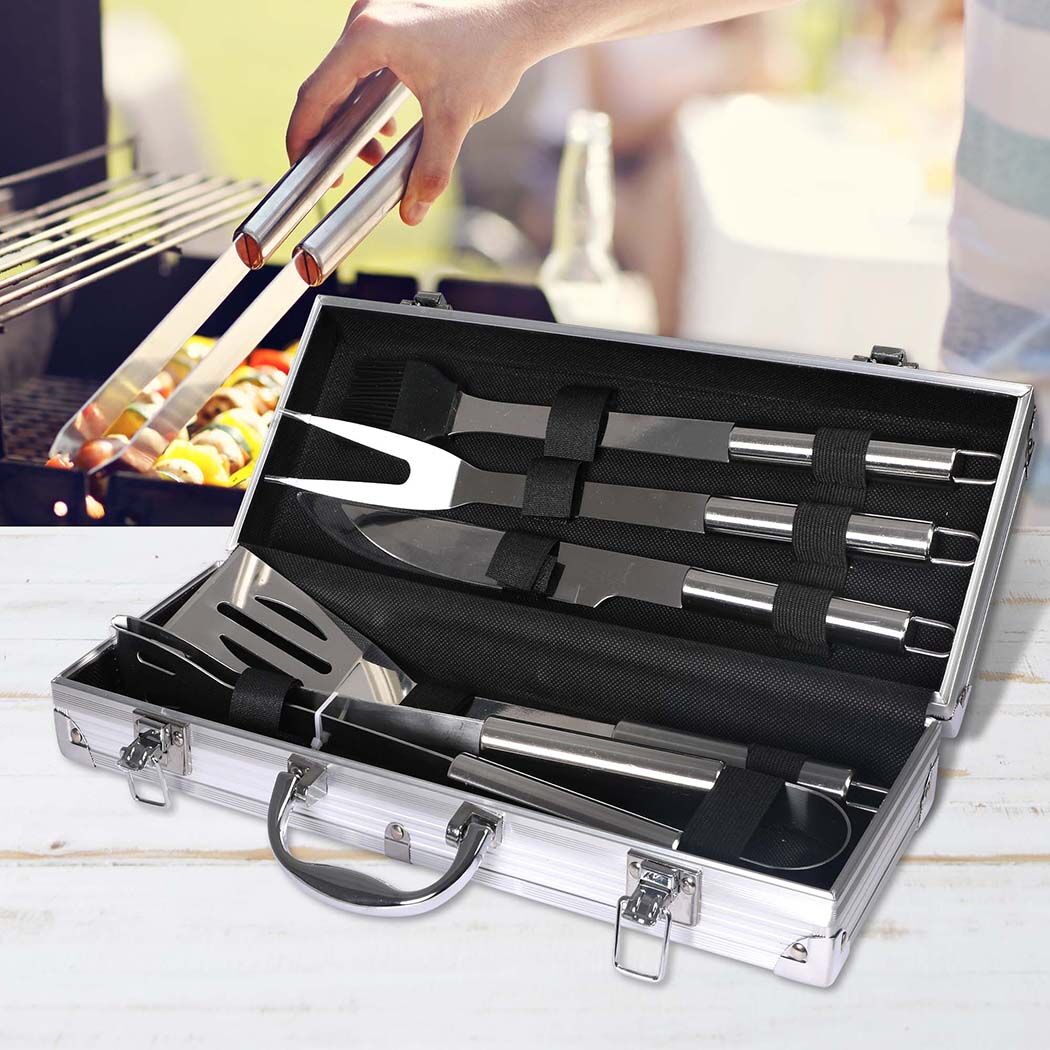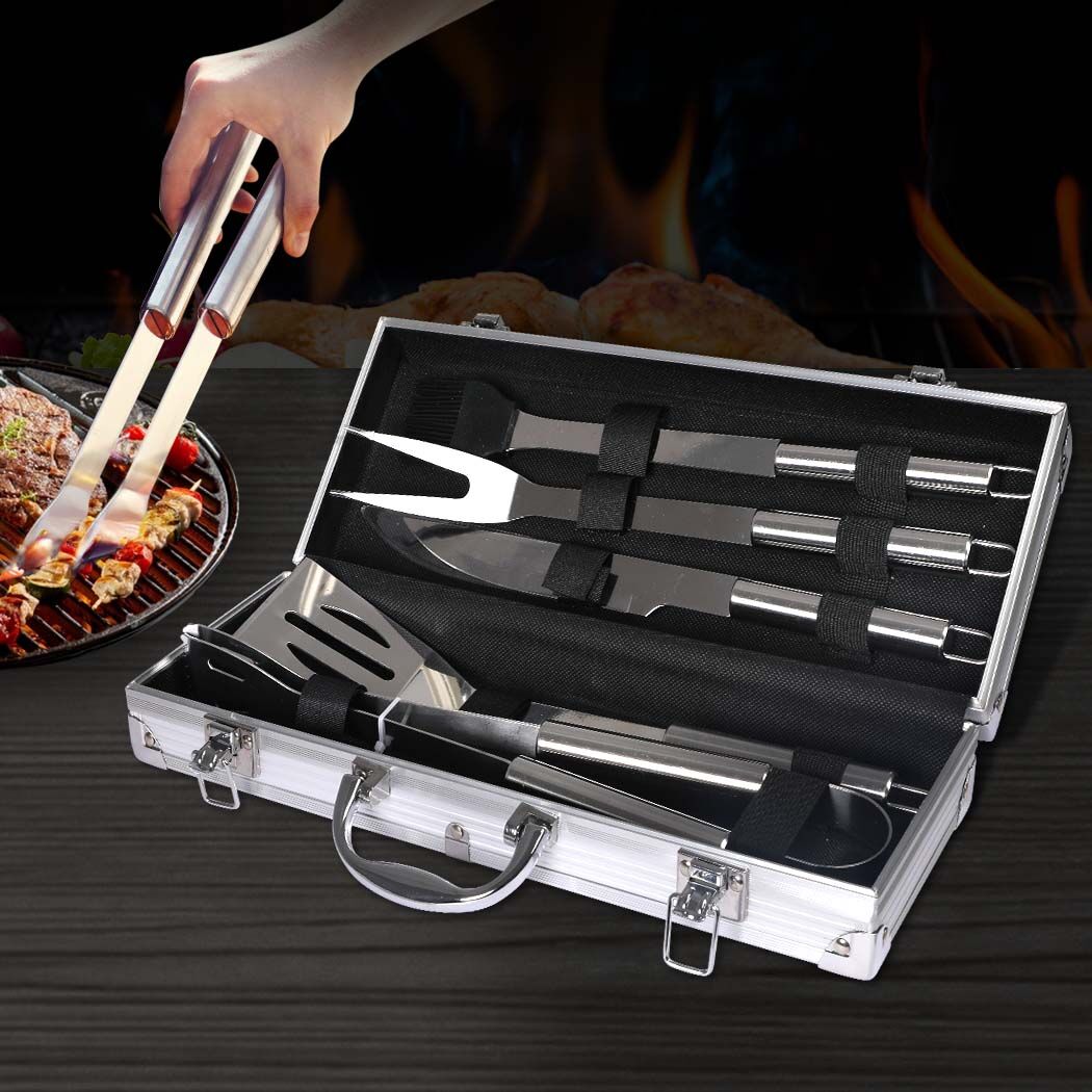 A perfect BBQ needs the perfects tools and you can’t go past these BBQ accessories. Put a few T-bone steaks some onions a few portobello mushrooms and you have a fine meal to impress the harshest critics.Nobody wants to be cooking in a park with friends and they are missing an implement. Your new camping utensils have you covered. Tongs knife spatula skewer. You will be organised for cooking anything.Carry your grilling accessories wherever you need in your aluminium carry case. Take them out to your backyard or on a long road trip. Set up the perfect coal barbeque and cook away.Clean them after each use and they will treat you well. Our stainless-steel tools are known for their durability. The long handles are perfect for keeping you safe when cooking. Keep everything organised and neat.The quick lock latch keeps everything nice and protected when you are carrying your grill set. Enjoy the easy to clean grid texture interior for years to come.