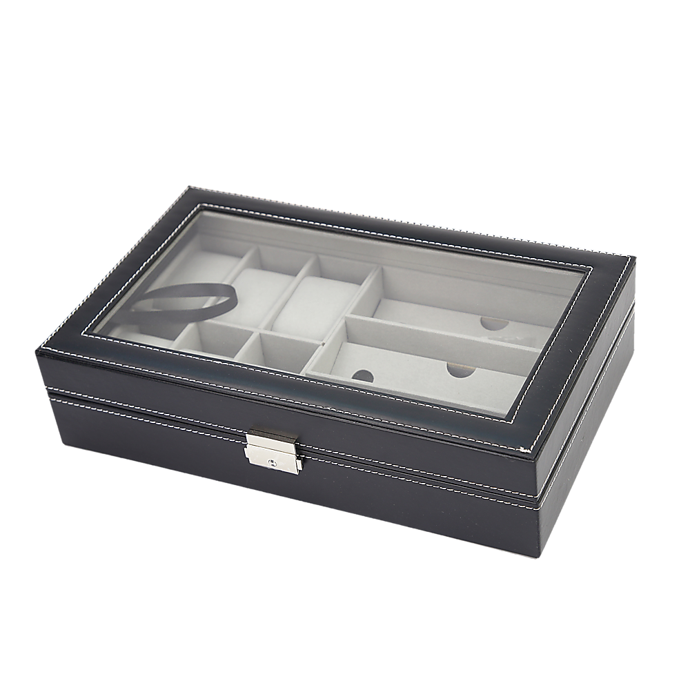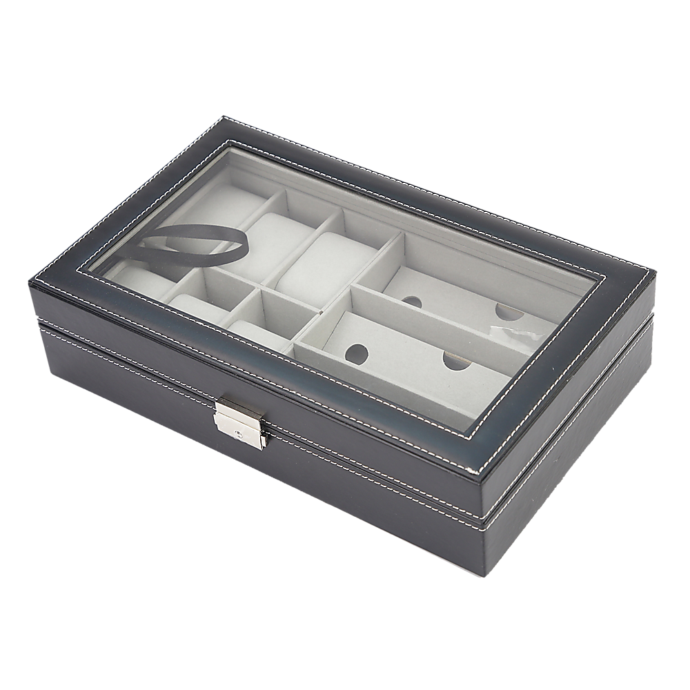 $31.95Need a spot to stash both your watches and your shades? This elegant display box from Randy Travis Machinery has a place for bothand your prescription glasses as well. In gorgeous PU leather, this case features a transparent glass lid to display your collection inside. The watch compartments feature softly padded pillows to cushion these delicate instruments and prevent scratches.