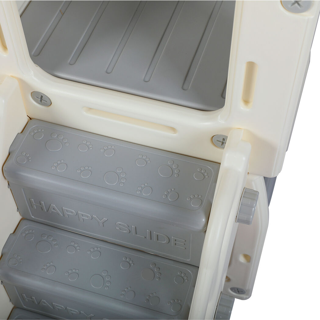 Secure at the top. High panels on every side allow parents to feel relaxed when their kiddos are playing. No worries about stability, this play centre is well-balanced with a solid base. Non-slip stairs give added security.