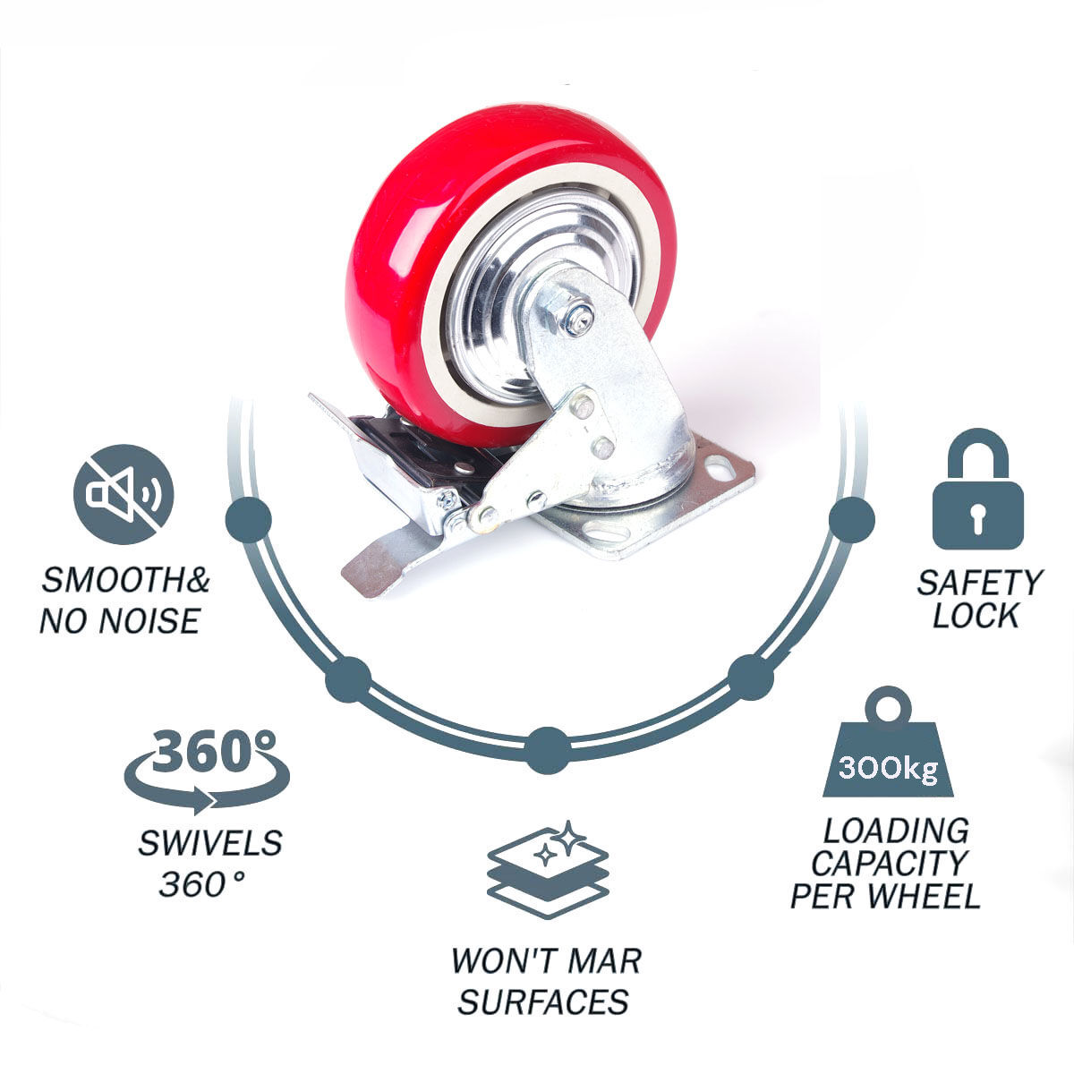 Castor wheels feature a top plate swivel, the wheels can rotate 360 degrees and transport heavy items smoothly from one place to another without leaving any traces on the floor