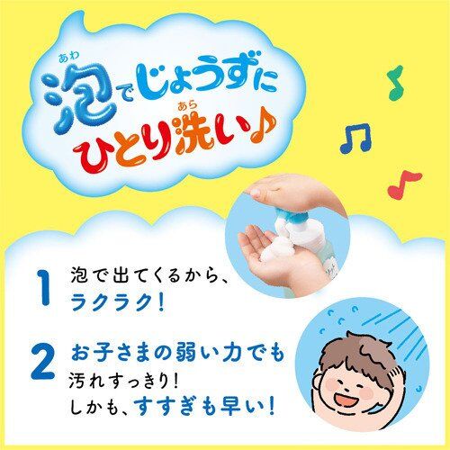 Description:A foaming shampoo for children that smooths hair that gets tangled easily and removes sweat odors and dirt. The fine foam reaches every corner of the scalp and lifts and removes dirt, so you can wash thoroughly even with gentle pressure. Easy-flowing foam, so rinsing is quick