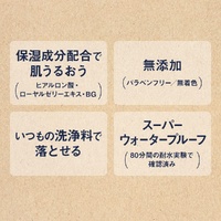 Adhesive cushioning film protects from ultraviolet rays (SPF50+PA++++) and provides a barrier to fine particles such as pollen*. Keeps your skin moisturized and plump. Gloss essence type. Contains moisturizing ingredients (hyaluronic acid, royal jelly extract, BG). Super waterproof. The mask is resistant to rubbing and does not come off easily. Prevents sebum from breaking down and can also be used as a makeup base. It can be removed with your usual detergent. *It does not prevent the adhesion of all particulate dirt.