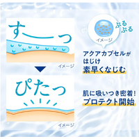 Smooth and snug.CIt smoothly spreads on like water, and snugly adheres to your skin. It changes into a facial mask-like texture to provide protection! UV protection with a water-layer mask. It blends swiftly without a white cast. For translucence and glowing skin. Moisturizes the skin for improved foundation wear. SPF50+ PA++++. Ultra waterproof (water resistance tested in water for 80 minutes). Can be washed off with soap. Formulated with moisturizing ingredients (hyaluronic acid, royal jelly extract, and glycerin).