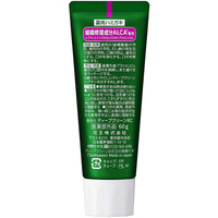 Contains carefully selected medicinal ingredients (anti-inflammation, tissue repair, blood circulation promotion, sterilization, tooth strengthening). The anti-inflammatory ingredient (beta-glycyrrhizinate) reaches into the periodontal pocket and inhibits the periodontal pocket from becoming deep, preventing pyorrhea. The tissue repair ingredient (ALCA) activates gums and prevents pyorrhea. It foams modestly and is easy to polish. Contains tea catechins EX (wetting agent). Prevent bad breath Contains high concentration fluorine (1450 PPM).