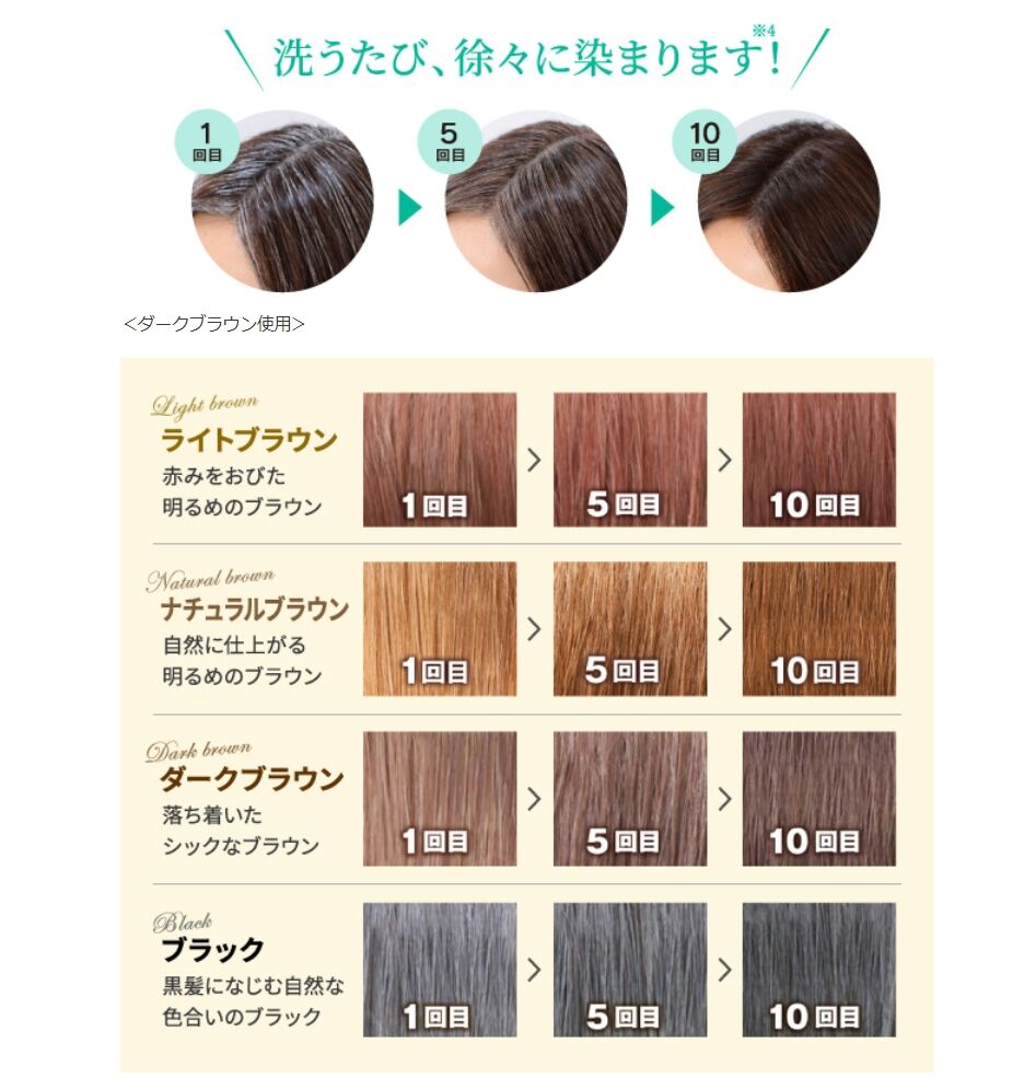 Simply replace your usual shampoo with "Rishiri Color Shampoo" and your gray hair will gradually become less noticeable, which is very easy.