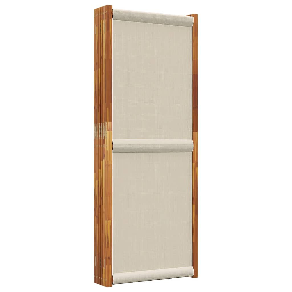 This room divider is perfect for creating a separate, private area or section in your indoor or outdoor living space. Durable material: Solid acacia wood is a beautiful natural material. Acacia wood is a tropical hardwood, which is dense, sturdy, and durable. The strong textilene is also weather-resistant and easy to clean.Flexible and easy to fold: Each partition is connected by galvanised hinges and can be easily folded to some extent according to your needs to save space.Multiple functions: This room privacy screen can be used as a decoration as well as a partition. It’s perfect for separating an area for privacy or creating an extra room.