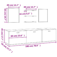 This trendy bathroom furniture set is meant to be an excellent addition to your bathroom, giving it a tidy and striking appearance! Durable material: The engineered wood is of exceptional quality with smooth surface and also features strength, stability and resistance to moisture. Extra storage: The bathroom cabinet offers extra storage space to store the essentials in your bathroom. The top of the cabinet is ideal for placing the wash basin. Wall-mounted function: The cabinet doesn't take any floor space. You can hang it on the wall easily. Practical mirror: Use the included mirror to neat your daily dressing. It also adds an excellent appearance to your home decor. Good to know:The wash basin is not included in the delivery. The drain is included in the delivery.Screws and plugs for inside the wall are not included. We advise to find and use screws and plugs suitable specifically for your walls. If you're not sure, you can consult with a professional. Please read and follow each step of the instructions.