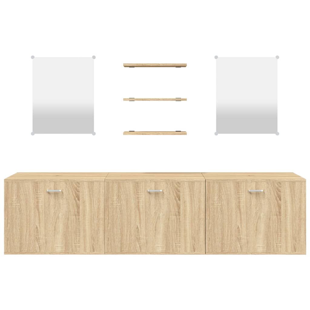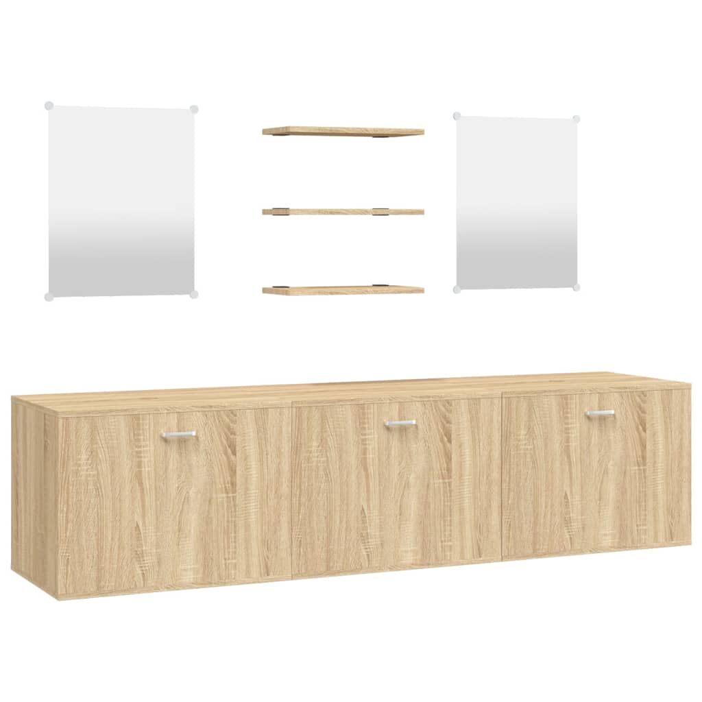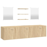 This trendy bathroom furniture set is meant to be an excellent addition to your bathroom, giving it a tidy and striking appearance! Durable material: The engineered wood is of exceptional quality with smooth surface and also features strength, stability and resistance to moisture. Extra storage: The bathroom cabinet offers extra storage space to store the essentials in your bathroom. The top of the cabinet is ideal for placing the wash basin. Wall-mounted function: The cabinet doesn't take any floor space. You can hang it on the wall easily. Practical mirror: Use the included mirror to neat your daily dressing. It also adds an excellent appearance to your home decor. Good to know:The wash basin is not included in the delivery. The drain is included in the delivery.Screws and plugs for inside the wall are not included. We advise to find and use screws and plugs suitable specifically for your walls. If you're not sure, you can consult with a professional. Please read and follow each step of the instructions.
