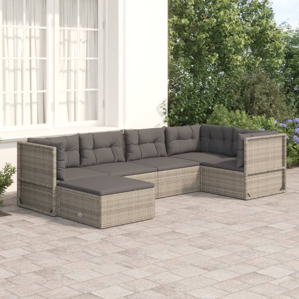 6 Piece Garden Lounge Set with Cushions Grey Poly Rattan