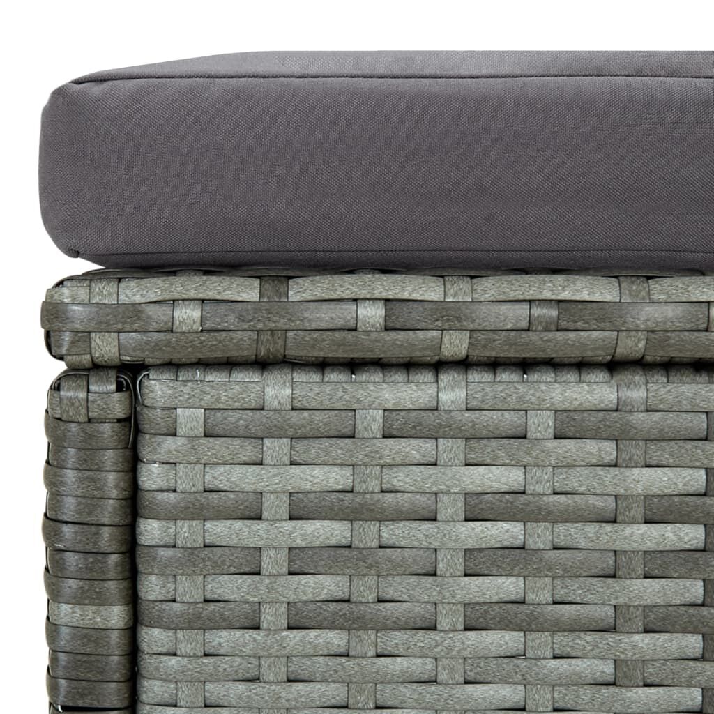 Enjoy chatting with your family members and friends in your outdoor space on this poly rattan garden lounge set with cushions! This comfy outdoor lounge set, featuring a powder-coated steel frame covered with PE rattan, is sturdy and easy to clean, making it ideal for daily outdoor use. Thanks to its lightweight construction, you can move the set easily. The thickly padded cushions add extra comfort in your lounging time. The corner sofa and stools provide enough seating space for family gatherings. In addition, the coffee table is ideal for placing drinks, food and decorative items. Note: We recommend covering the set in the rain, snow and frost.