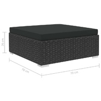 This rattan sofa set combines style and functionality, and will become the focal point of your garden or patio. The whole furniture set is designed to be used outdoors year-round. Thanks to the weather-resistant and waterproof PE rattan, the lounge set is easy to clean, hard-wearing and suitable for daily use. The seat set features a sturdy powder-coated steel frame, which is highly durable. It is also lightweight and modular, which makes it completely flexible and easy to move around to suit any setting. The thick, removable cushions are highly comfortable. Delivery includes 2 corner sofas, 1 centre sofa, 1 ottoman, 1 armchair, 1 tea table, 5 seat cushions and 6 back cushions. Note: We recommend covering the set in the rain, snow and frost.