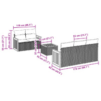 This garden sofa set is the perfect addition to your backyard, terrace, or patio, providing a comfortable and inviting space for chatting with family and friends or simply relaxing and enjoying the outdoors. Durable material: PE rattan, also known as poly rattan, is a strong, low-maintenance synthetic material that looks like natural rattan. It's lightweight, easy to clean, and commonly used for outdoor furniture due to its durability and weather-resistant properties.Storage function with water-resistant bag: The garden furniture features storage space under the seat, complete with a water-resistant bag for storing cushions, toys, and other items. The inner bag can be securely fastened to the outdoor furniture with hook-and-loop fasteners for added stability.Stable and easy-to-clean tabletop: This garden table has an acacia wood top that is sturdy, durable, and easy to clean with a damp cloth.Removable and washable cover: These seat cushions feature removable covers for easy washing and maintenance.Modular design: This outdoor furniture set has a modular design, making it completely flexible and easy to move around, so you can create a customised outdoor furniture arrangement. Good to know:To make sure your outdoor furniture stays beautiful, we recommend protecting it with a waterproof cover.