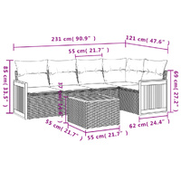 This garden sofa set is the perfect addition to your backyard, terrace, or patio, providing a comfortable and inviting space for chatting with family and friends or simply relaxing and enjoying the outdoors. Durable material: PE rattan, also known as poly rattan, is a strong, low-maintenance synthetic material that looks like natural rattan. It's lightweight, easy to clean, and commonly used for outdoor furniture due to its durability and weather-resistant properties.Storage function with water-resistant bag: The garden furniture features storage space under the seat, complete with a water-resistant bag for storing cushions, toys, and other items. The inner bag can be securely fastened to the outdoor furniture with hook-and-loop fasteners for added stability.Stable and easy-to-clean tabletop: This garden table has an acacia wood top that is sturdy, durable, and easy to clean with a damp cloth.Removable and washable cover: These seat cushions feature removable covers for easy washing and maintenance.Modular design: This outdoor furniture set has a modular design, making it completely flexible and easy to move around, so you can create a customised outdoor furniture arrangement. Good to know:To make sure your outdoor furniture stays beautiful, we recommend protecting it with a waterproof cover.
