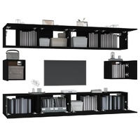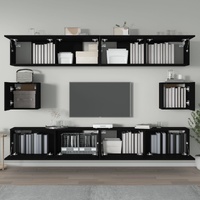 This classic TV cabinet set is designed to be a focal point of your room, featuring a trendy yet practical design. Sturdy material: The engineered wood is of exceptional quality with smooth surface and also features strength, stability and resistance to moisture. Made of engineered wood, these TV stands are easy to clean.Ample storage space: These TV units provide ample storage space to keep all your magazines, DVDs and any other items well organised.Wall-mounted design: The media cabinet doesn't take any floor space. You can hang it on the wall easily.Practical doors: Keep your essentials free from dust by hiding them behind the door of the media unit. Note:Screw(s) and plug(s) for inside the wall are not included. Seek and use screw(s) and plug(s) suitable for your walls. If you are uncertain, seek professional advice. Read and follow each step of the instruction carefully.Each product comes with an assembly manual in the box for easy assembly.