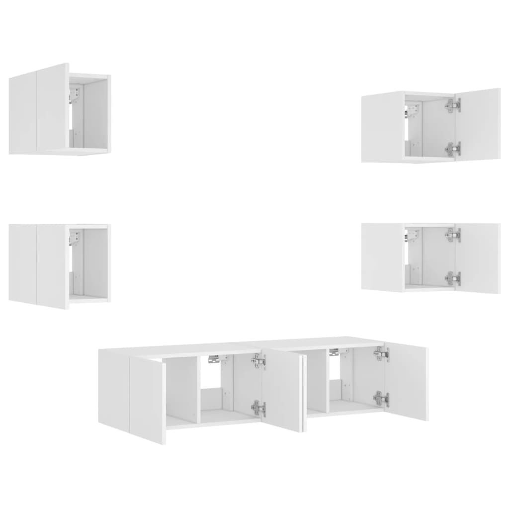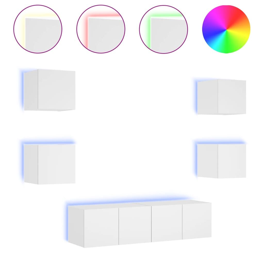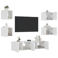 These TV wall units are the perfect solution for your living space to maximise space and keep the floor areas uncluttered. Sturdy material: The engineered wood is of exceptional quality with a smooth surface and also features strength, stability and resistance to moisture.RGB LED lights: The TV unit is equipped with vibrant RGB LED lights. With various customisable menus, you can effortlessly change the colour of the lights and even set them to adjust automatically. These LED lights not only enhance the contemporary look of the floating TV cabinet but also add to its trendy appeal.Wall-mounted design: The television unit can be wall-mounted to add extra storage space. That way, you can maximise your floor space and keep the area clean.Ample storage space: The floating TV unit provides ample space to store your daily essentials such as books, DVDs, magazines, media supplies and other items neatly organised and within easy reach.Versatile design: You can use it as a TV cabinet or mount it on the workplace wall for convenient storage of tools or other miscellaneous items. Also, it transforms an empty wall into a design feature. Good to know:Screws and plugs for inside the wall are not included. We advise to find and use screws and plugs suitable specifically for your walls. If you're not sure, you can consult with a professional. Please read and follow each step of the instructions.The product has a USB connector that requires a certified 5V USB power source (not included).