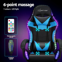$162.61Now you can get a comfy massage from the comfort of home with the Artiss Massage Gaming Chair. It features an ergonomic design with full body support, premium PVC leather upholstery, high-density sponge padding and a sturdy nylon base. The racing chair style design encourages proper posture and airflow, perfect for gamers or anyone wanting to add extra flair to their home office. It uses premium gas lift components for easy height adjustments and can tilt up to 135 degrees for that perfectly comfortable position. For your relaxing massage, the chair features 6 massage points at the lower back, lumbar cushion and thighs, perfect for sitting back and relaxing. The headrest is removable and adjustable and the chair also features a retractable footrest so you can customize your comfort. The chair is flexible with 360-degree rotation, 10cm height adjustment and five dual-wheel castors for easy mobility. Best of all, 7 bright LED colours will help to light up your space in a dynamic display. No matter whether you're working, gaming or taking a long-desired break, the Artiss Massage Gaming Chair is here to provide premium comfort and support.