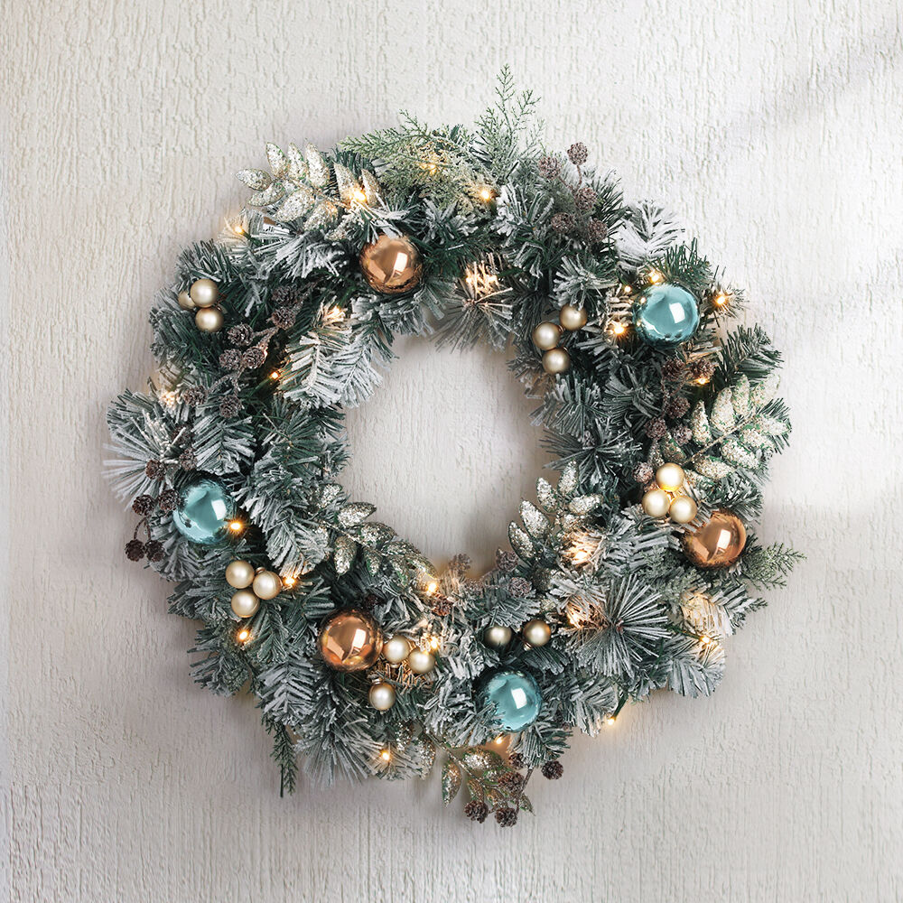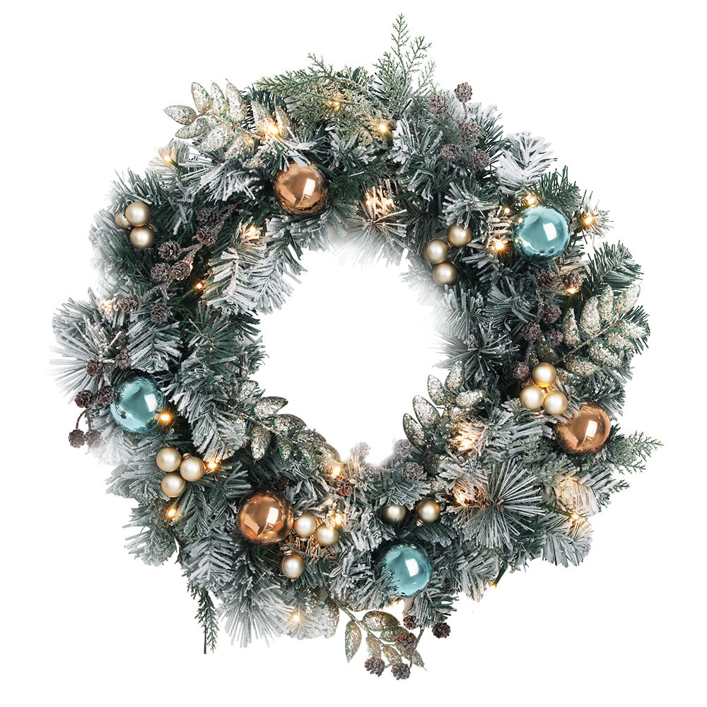 Embrace the holiday spirit with this lush, evergreen foliage, adorned with sparkling lights and delightful ornaments. Drape it over mantels, staircases, or doorways, instantly transforming any space into a winter wonderland. Make this season even merrier with the warm glow and delightful charm of our Jingle Jollys Christmas Wreath!