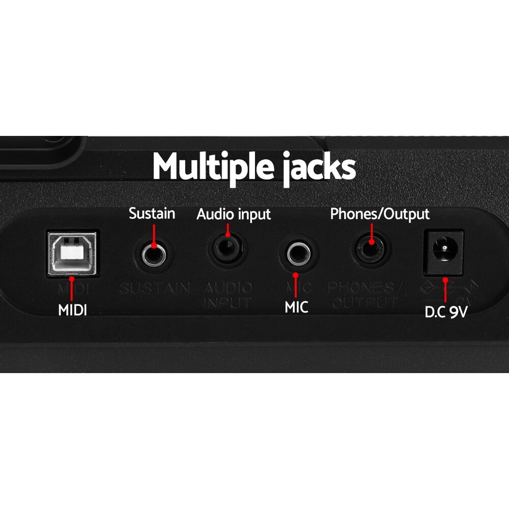 Jacks: USB-MIDI, Pedal, Audio in/out, Headphone, MIC
