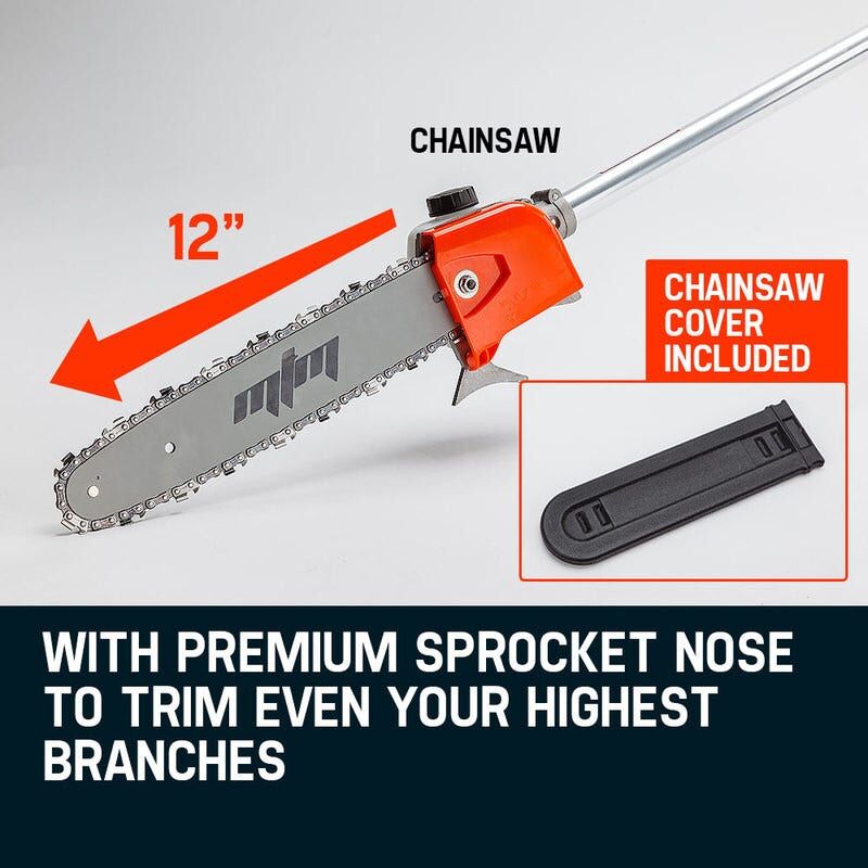 $375.99Why buy a stack of different tools when there's one that can do it all? With two great attachments the MTM MTX200 62cc Long reach Pro Multi-Tool comes fully loaded with dual floating bearings commercial quick change couplings, auto chain lubricator and adjustable chain oil feed for smooth, effortless performance. Get to work fast with its patented 'Easy Start System', then power through any job with ease thanks to the super responsive direct injector carburettor.