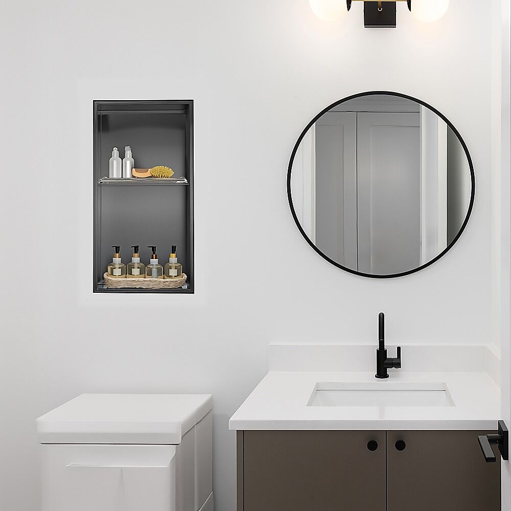 Transform your space into a modern oasis with this elegant and functional niche. Featuring two shelves, it provides the perfect storage solution for all your bathroom essentials and small shower products. Enjoy the seamless blend of stylish design and practical convenience.