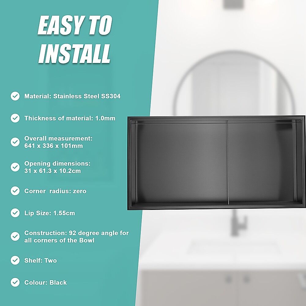 $257.39Upgrade your bathroom with our 641 x 336 x 101mm Shower Niche Double Shelf Organizer - no tile needed!