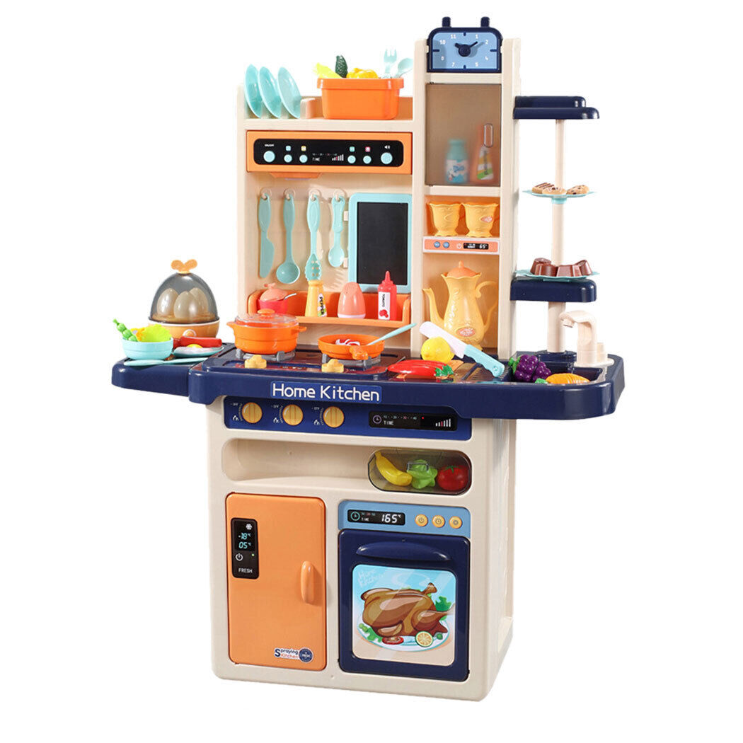 Simulates and performs like a real kitchen, when little chef wants to cook it can emit out soft spray to make them feel like something is cooking inside. It comes equipped with a kitchen ventilator to keep all the smoke away. They can easily store all their cutlery in its smoothly accessible storage shelves. A handwritten menu board is provided to note down all the ingredients required for a great cook. The electric egg steamer rotates automatically to mimic the process of cooking eggs. Notice as they gently dice fruits and vegetables using its chopping board, so adorable to watch. The stove releases bubbles and sizzles to make it feel realistic. It also comes with a playable stove, oven, and cake stand. When all the cooking is done, let them wash away the leftovers in its functional sink, sprinkles small amounts of water for easy wash. Apart from all of the serious cooking! We have made it appealing for kids, textured with beautiful colours. Its realistic lights and sounds will make the play more fun and more amusing.