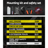 $254.73The GIANTZ Pro-series Chainsaw is the answer for people who are looking for doing serious cutting and bring it to the next level. Featuring a powerful 65cc, 2-stroke full crank engine for smoother starting and running, the chainsaw trims and cuts every gardening challenge in its path with minimum hassle. Efficient and lightweight in design and equipped with a comfortable D-handle, the chainsaw allows quick-connect coupling for easy change of attachments. In fact, up to seven attachments for every conceivable cutting job. Better still, the chainsaw also comes with three extra thick alloy extension poles which allows you to reach for those hard-to-get branches. Not least, the cutting equipment also features fine quality construction and cutting-edge technology to ensure the chainsaw remains reliable, durable and sharp consistently.