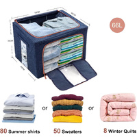 66L Cloth Storage Box Closet Organizer Storage Bags Clothes Storage Bags Wardrobe Organizer Idea Grey Blue