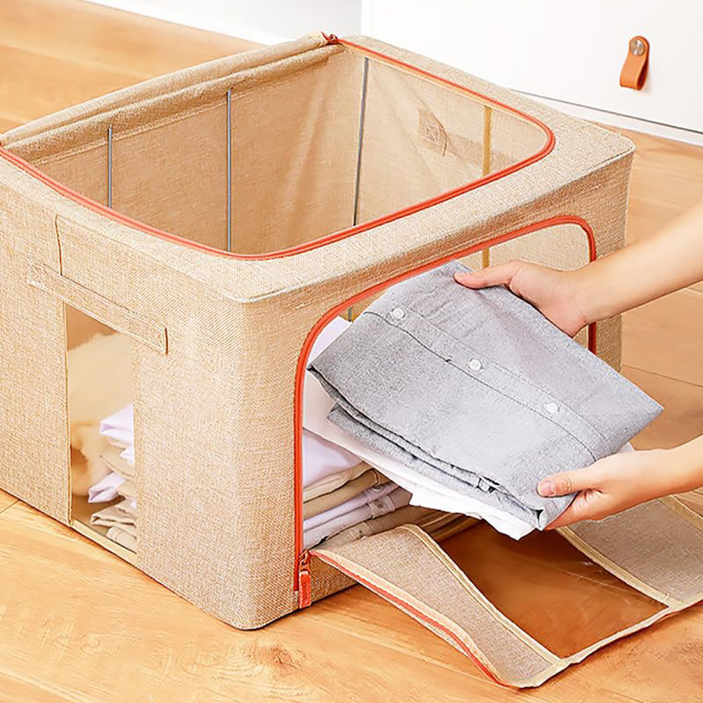 Versatile Metal Frame Storage Box, the perfect solution for your storage needs. These bins are made from high-quality linen fabric, which not only adds a touch of elegance to your closet but also provides durability and longevity. With their ideal dimensions, they fit most home storage space, maximizing your storage space.