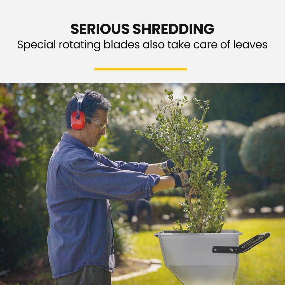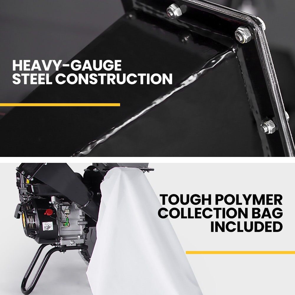 Quadruple heavy-duty hardened steel blades churn out valuable mulch with ease. The rotating blade design means this is one of the few chippers on the market that can also take care of shredding leaves, for maximum convenience! The Raptor comes with a durable collection bag that allows for easy disposal, or transportation of discharge.