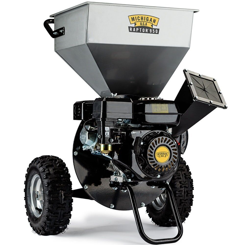 $1,127.05The Michigan Raptor 950 2-in-1 Portable Wood Chipper/Shredder features an innovative self-feeding upright design and is ideal for large property owners, keen gardeners or commercial landscapers. The chipper and flail blade system efficiently shreds down branches and other organic debris into a fine reduced mulch that's perfect for composting.