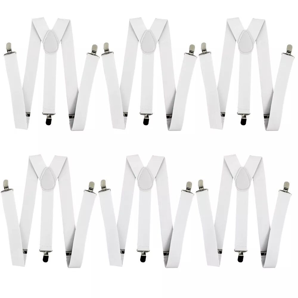 6x Men's Suspenders Braces Adjustable Strong Clip On Elastic Formal Wedding Slim